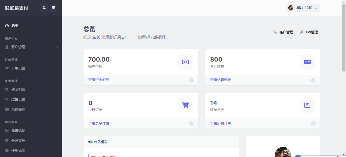 彩虹易支付旨在解决需要使用交易数据流的博客网、企业发卡、个人发卡、主机IDC等网站支付需求,提供的一个正规、安全、稳定、可靠、丰富的支付接口 API, 帮助开发者等个人主体快速使想法转变为产品原型。让创造价值的人体现价值。